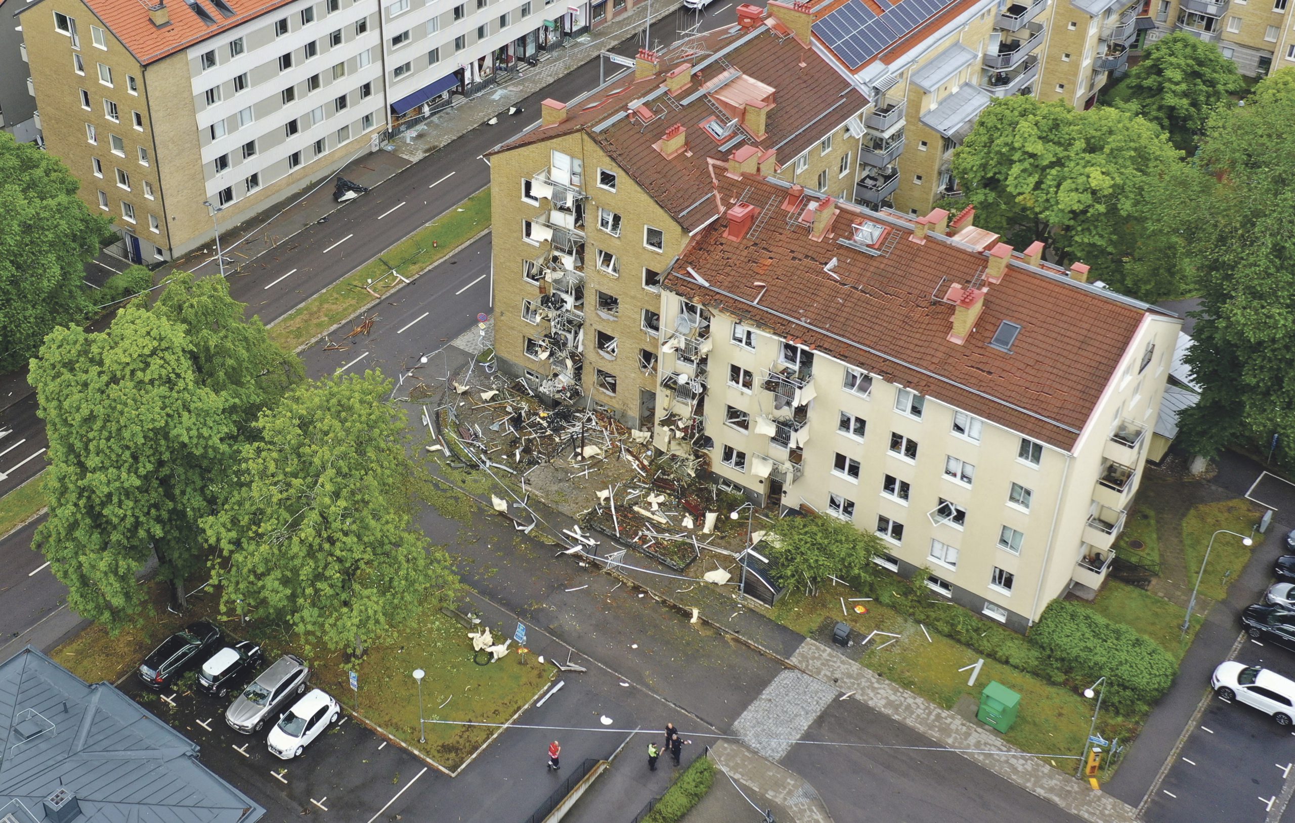 LINK÷PING 20190607 Flygbild / drˆnarbild ˆver de skadare husen efter den kraftiga explosionen i centrala Linkˆping p fredagen. Foto Jeppe Gustafsson / TT / Kod 71500