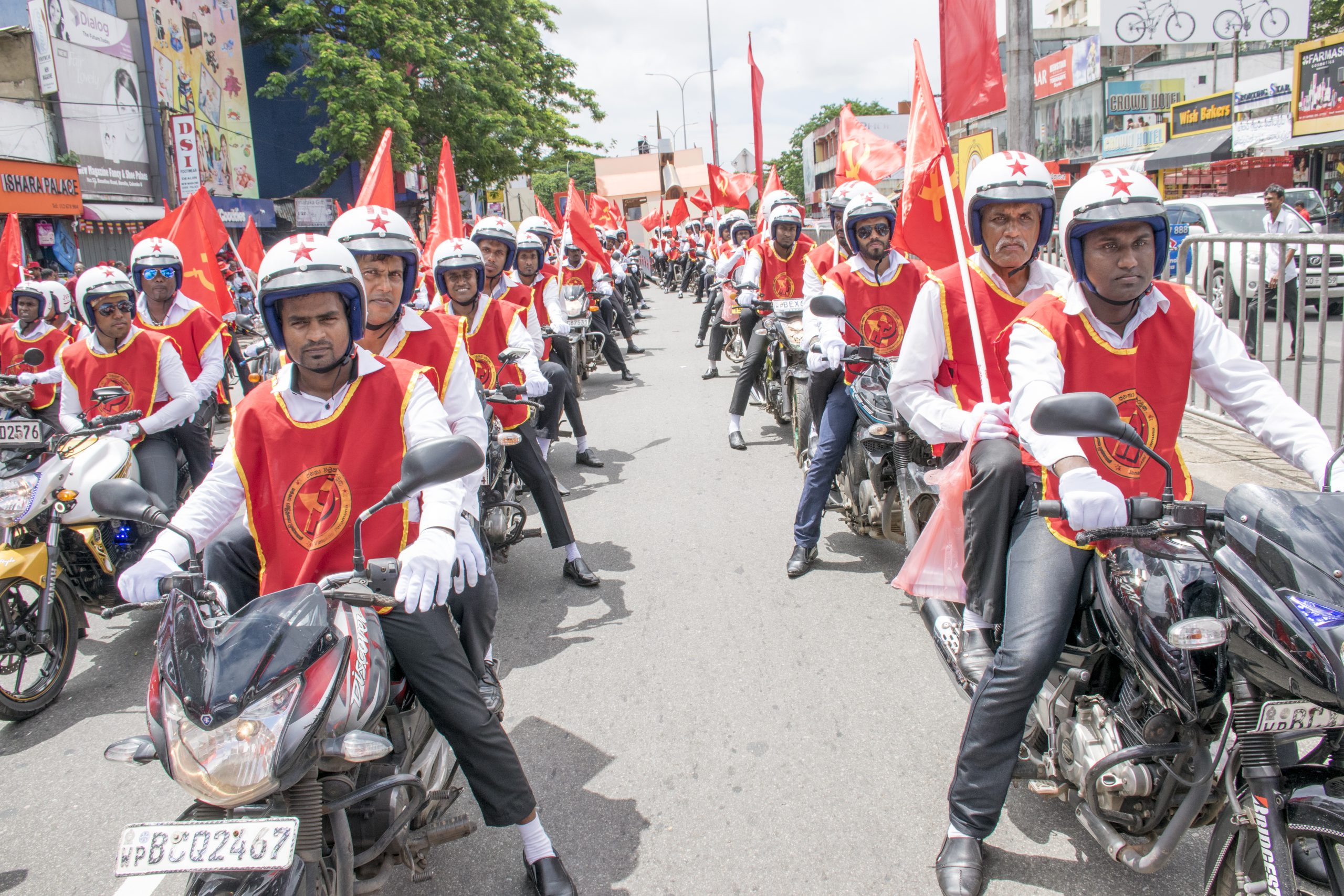 Det är en mäktig syn när tiotusentals JVP:are marscherar genom Colombo. Längs gatorna möts paraden av applåder och hejarop från åskådare. När tåget efter fem kilometer når fram till slutdestinationen, den park vi besökte en dag tidigare, har de sista deltagarna inte lämnat startplatsen.