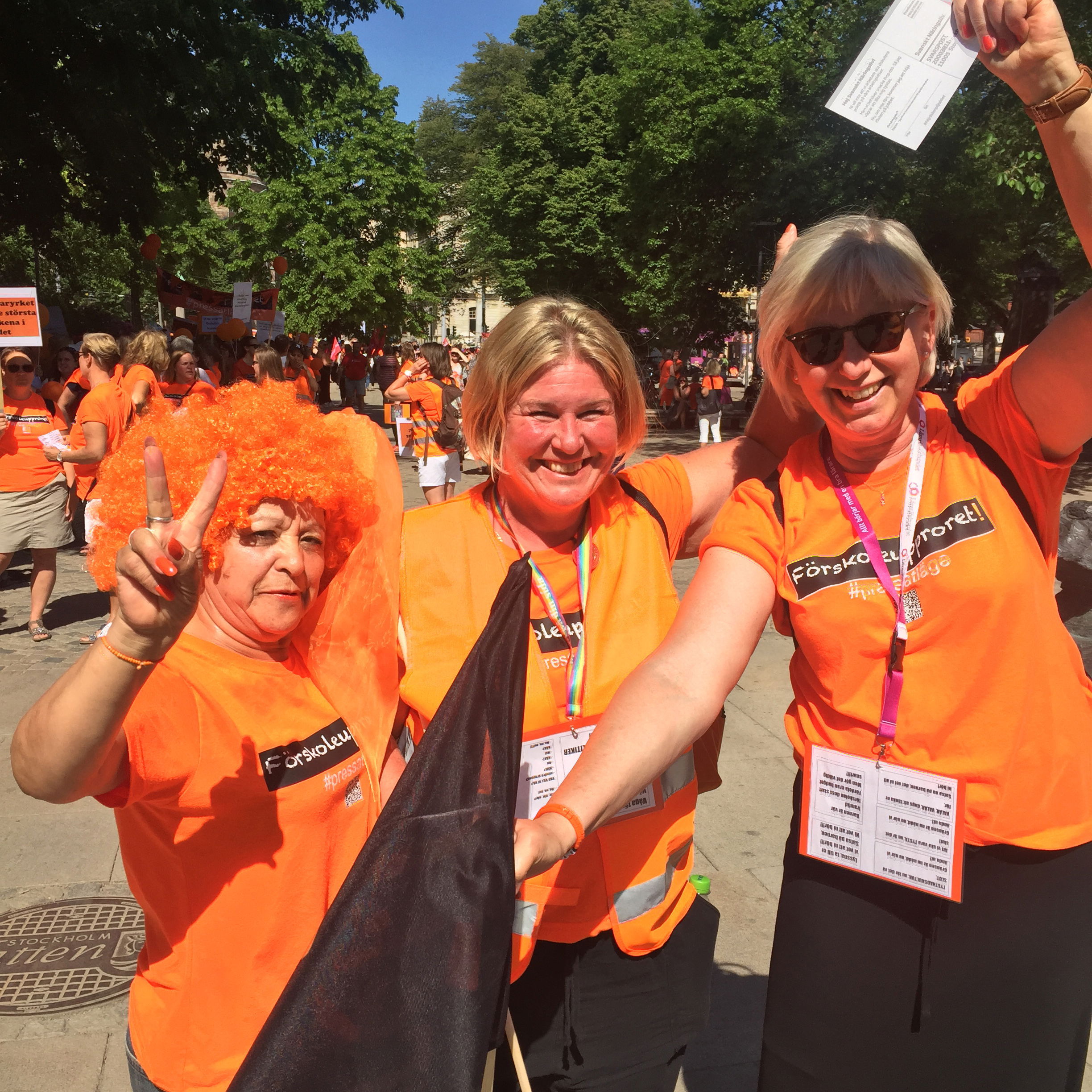 Bilar och bussar tutar och ger demonstranterna sitt odelade stöd. Det orange ledet verkar aldrig ta slut och arrangörerna uppskattar deltagarna till över 2000.