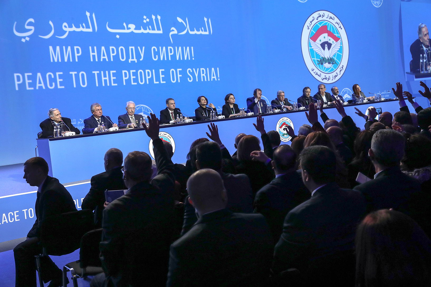 Den i Turkiet baserade oppositionskoalitionen flög till Sotji men lämnade aldrig stadens flygplats. Motiveringen var att de fick se att den syriska flaggan användes som symbol för dialogen, vilket de vägrade acceptera.