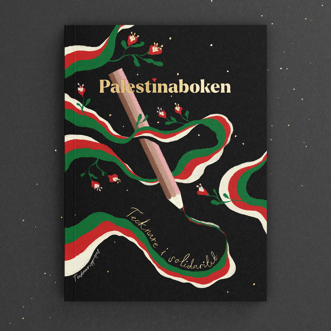 – Men det kanske viktigaste är att vår bok är ett meddelande till våra kollegor i Palestina, som mördas och trakasseras av den israeliska ockupationsmakten, just för att de är konstnärer. Förordet är skrivet av Mohammad Sabaaneh som är Palestinas främsta satirtecknare. Han har själv suttit i israeliskt fängelse för sina bilders skull.