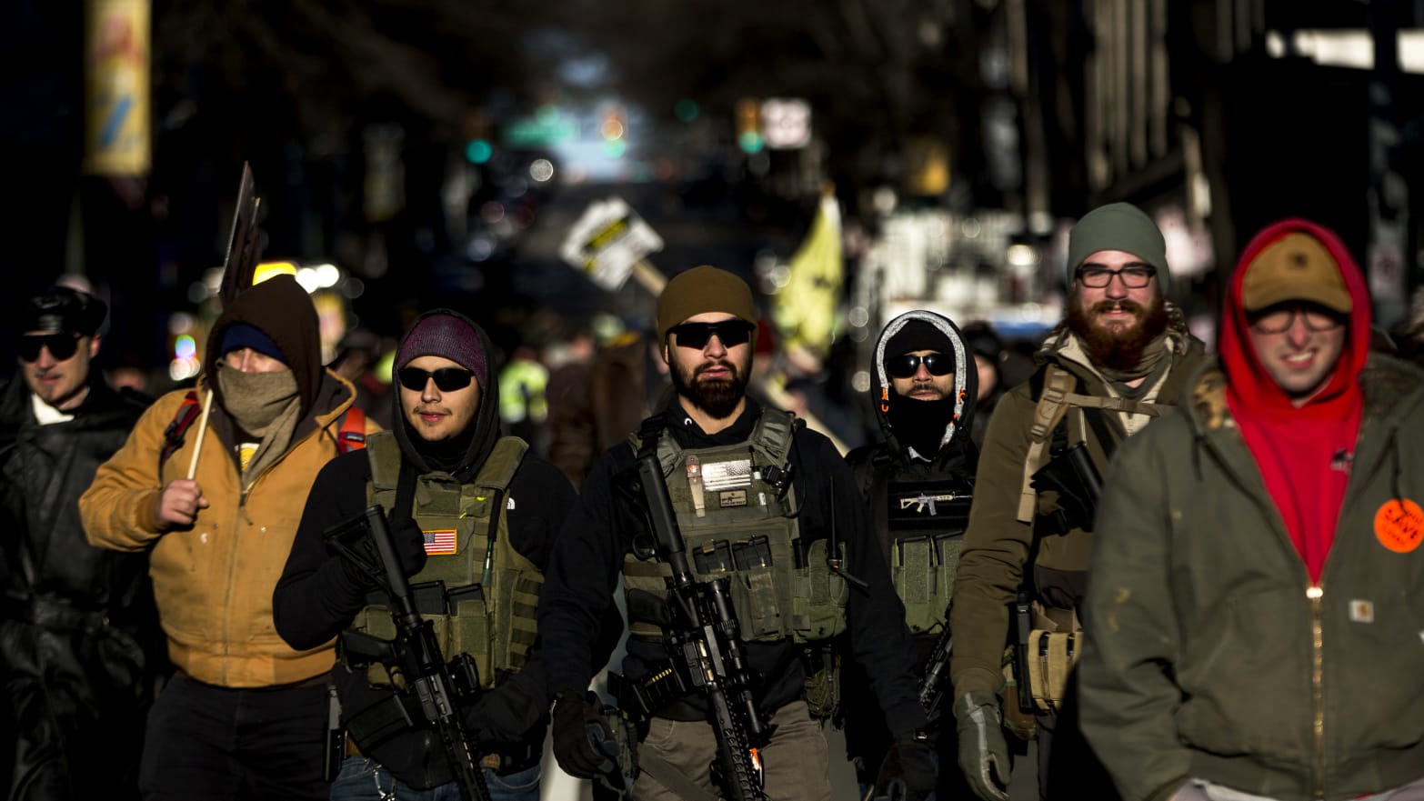 Medlemmarna i Proud Boys är tungt beväpnade med automatvapen och ser sig själva som försvarare av den västerländska civilisationen.