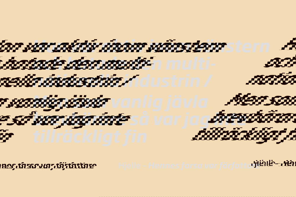 Vardagen är kärnan i Hjelles musik – en slags diskbänksrealistisk underdog-rock på skånska. Tråkigt är det inte. Kanske simpelt, men slagkraftigt… och ofta riktigt jävla roligt.