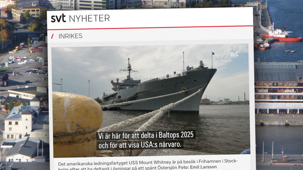”Det amerikanska ledningsfartyget USS Mount Whitney är på besök i Frihamnen i Stockholm efter att ha deltagit i övningar på ett spänt Östersjön”, skriver SVT. Efter att ha bidragit till spänningarna på Östersjön, rättare sagt. Försommaren har kantats av marinövningar från både Nato och Ryssland. I den största övningen, Natos Baltops 25, deltog örlogsfartyg och…