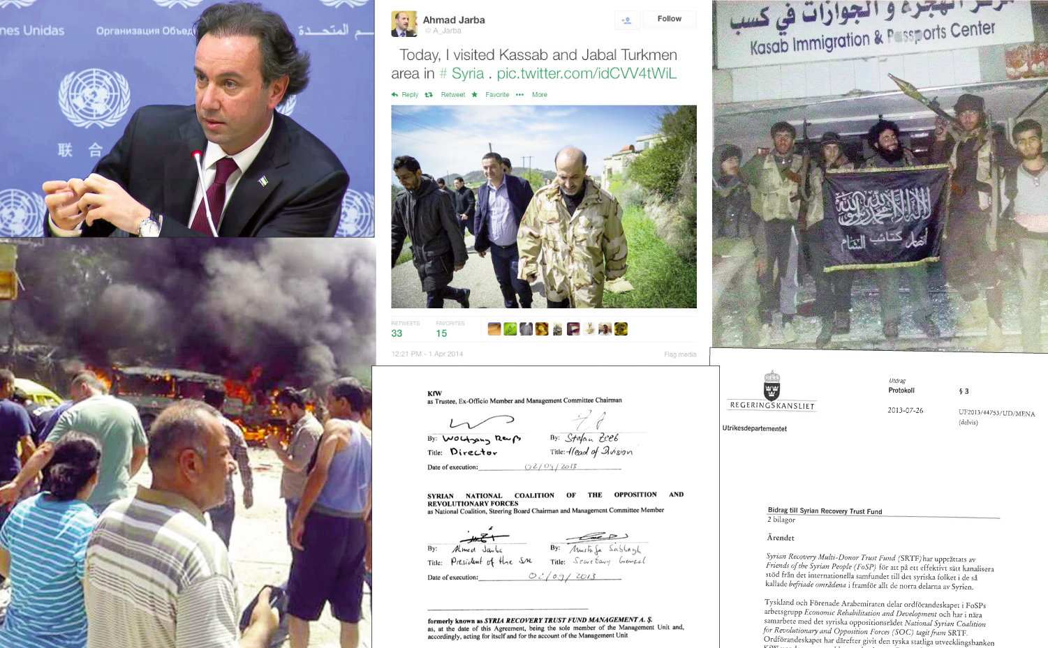 They Syrian opposition was promoted to chair the board of SRTF. At the official inauguration of the fund on 2 September 2013, its contract was signed by the foremost spokesperson of the opposition, the war-criminal-to-be Ahmad Jarba. In October the same year, Sweden payed 40 million SEK to the fund, as promised.