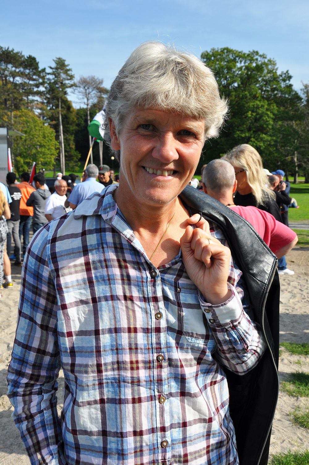 Pia brinner för fotbollen. Hon älskar att se unga tjejer och killar spela.