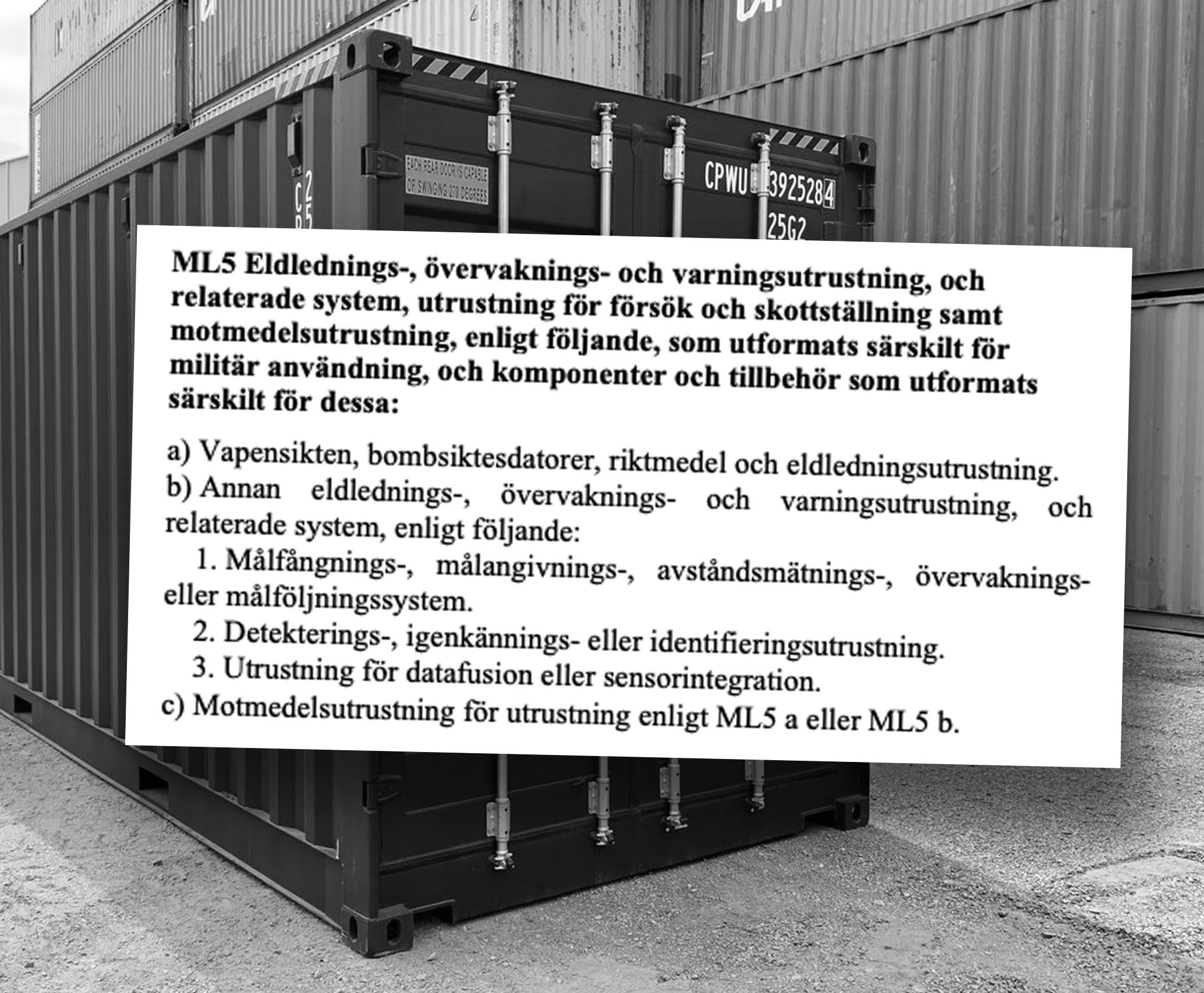 ”Eldlednings-, övervaknings- och varningsutrustning samt relaterade system, utrustning för försök och skottställning samt motmedelsutrustning som utformats särskilt för militär användning samt komponenter och tillbehör som utformats särskilt för dessa.”
