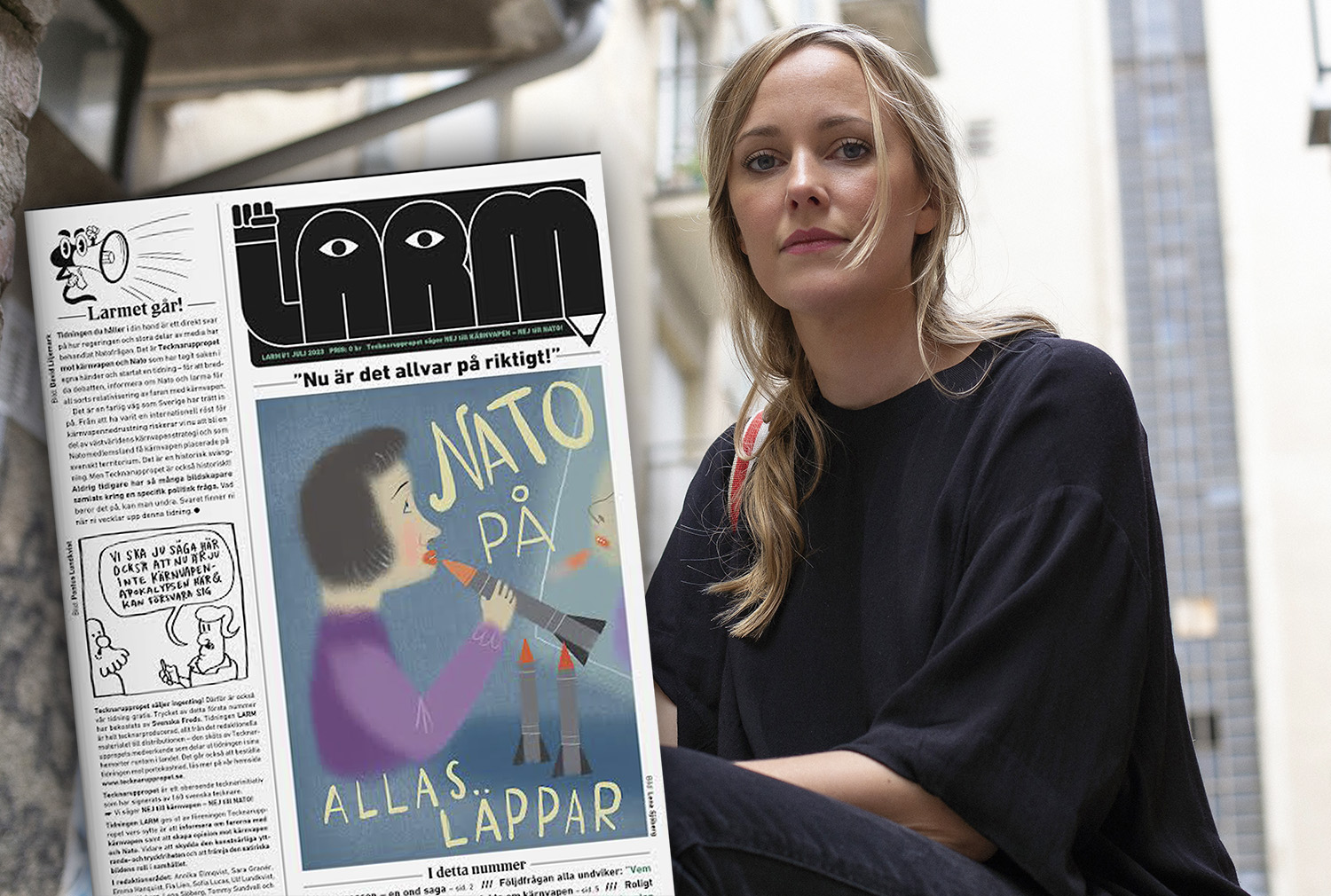 som vi. Vi kommer med starka argument i både text- och bildform, som vi hoppas att många ska hörsamma. Förutom satiren innehåller varje nummer fakta om Nato och kärnvapen som har utelämnats i stora delar av media, säger Karin Zaric Sunvisson.