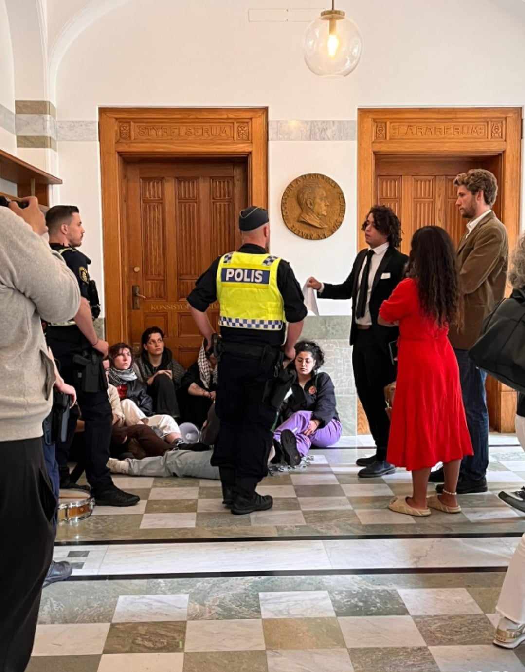 Studenter kedjar fast sig utanför möte på Göteborgs universitet